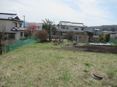 岡谷市81-1,82-1 岡谷インターへ1分 R20号バイパス角地 諏訪湖を望み自然豊かな場所 フォレストモールへのお買い物。バイパス沿いにワンちゃん達とお散歩を楽しめる。諏訪湖の花火も楽しめそう。 価格 777.4万円 土地面積 257m²(公簿) / 77.74坪 長野県岡谷市81‐1、82-1 JR中央本線(東京~塩尻)「岡谷駅」徒歩48分 内覧予約 諏訪平を眺める自然豊かな場所 諏訪平を眺める自然豊かな場所です。岡谷インターに近いので通勤にも便利。ここを起点に山に湖に花火に自然を満喫してください。 物件概要 物件名 岡谷市81-1,82-1 所在地 長野県岡谷市81‐1、82-1 価格 777.4万円 引渡時期 相談 物件種目 土地 地目 畑 土地面積 257㎡ 用途地域 準工業 都市計画 非線引区域 接道状況 方角:北 公私区分:公道 建ぺい率 60% 容積率 200% 土地権利 所有権 取引態様 専属専任 総区画数 手数料 手数料必要 備考 下水道 公共下水道 現況 更地 セットバック 農地法 許可必要 分割相談 情報更新日 周辺地図 他にも多数の物件を取り揃えております 。お気軽にお問い合わせください。 お問い合わせ 内覧予約 条件の近い物件 長野県岡谷市山手町2丁目 480万円 / 459.56㎡ 長野県岡谷市山手町 JR中央本線(東京~塩尻)「岡谷駅」 長野県諏訪市大字中洲5078 1200万円 / 336.68㎡ 長野県諏訪市大字中洲5078 長野県諏訪郡下諏訪町502-1 990万円 / 388.81㎡ 長野県下諏訪町502-1 JR中央本線(東京~塩尻)「下諏訪駅」徒歩25分 長野県茅野市ちの1833 B 710万円 / 783.00㎡ 長野県茅野市ちの1833 JR中央本線(東京~塩尻)「茅野駅」 長野県岡谷市長地鎮1丁目 720万円 / 267.66㎡ 長野県岡谷市長地鎮1丁目 JR中央本線(東京~塩尻)「岡谷駅」 長野県岡谷市湊3丁目4-9 430万円 / 233.76㎡ 長野県岡谷市湊3丁目4-9